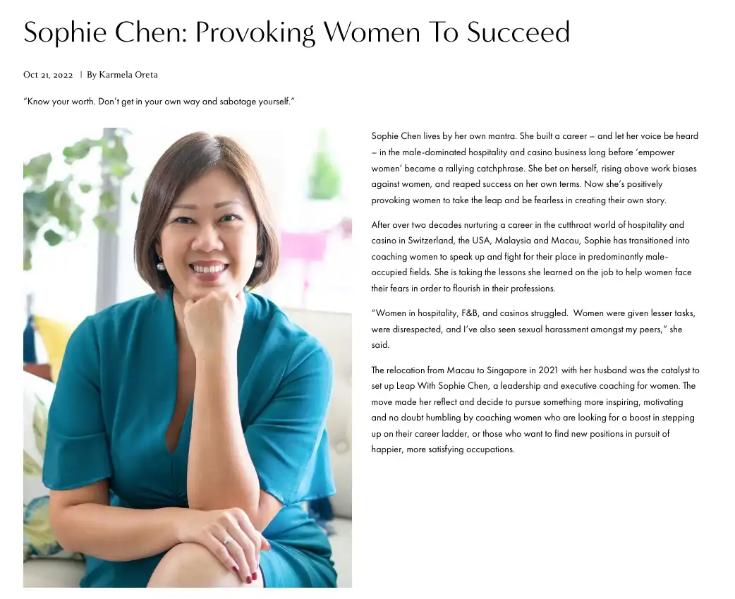 My clients are female leaders who are passionate, ambitious, focused, personally accountable and committed to achieving their goals. They are primarily from the hospitality, casino, travel and service sectors.